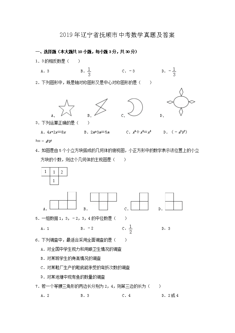 【文档名称】 2019年辽宁省抚顺市中考数学真题及答案(Word版).doc
