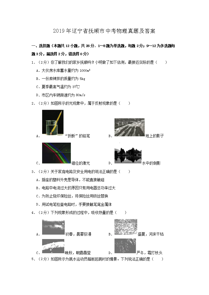 【文档预览】 无忧考网整理发布2019年辽宁省抚顺市中考物理真题及答案(Word版),前五页预览如下: