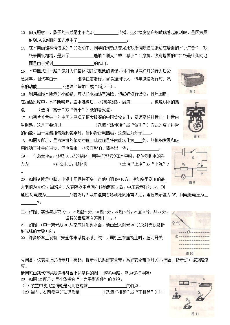 【文档名称】 2013年广西桂林市中考物理真题及答案(Word版).doc