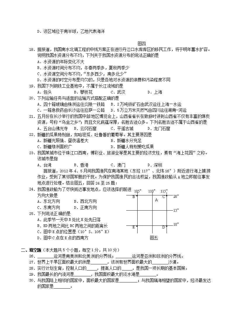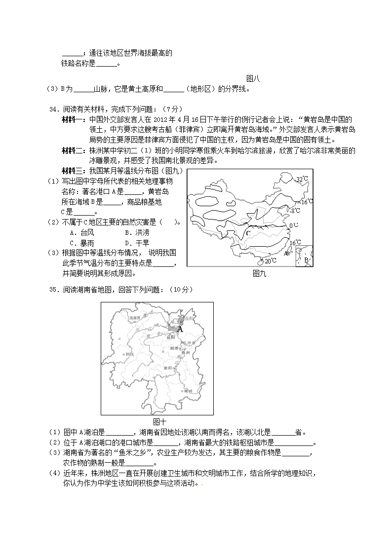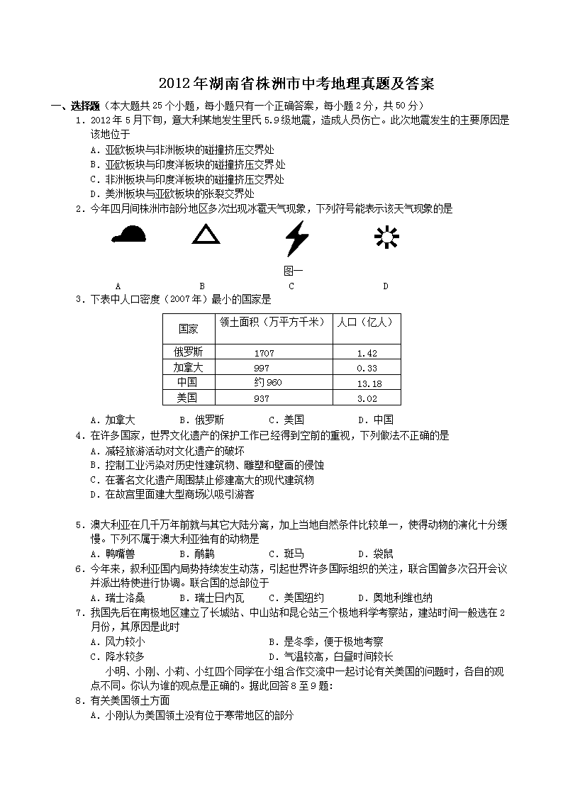 【文档名称】 2012年湖南省株洲市中考地理真题及答案(Word版).doc