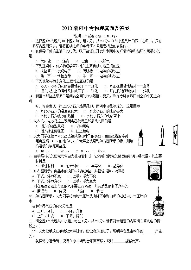 【文档名称】 2013新疆中考物理真题及答案(Word版).doc