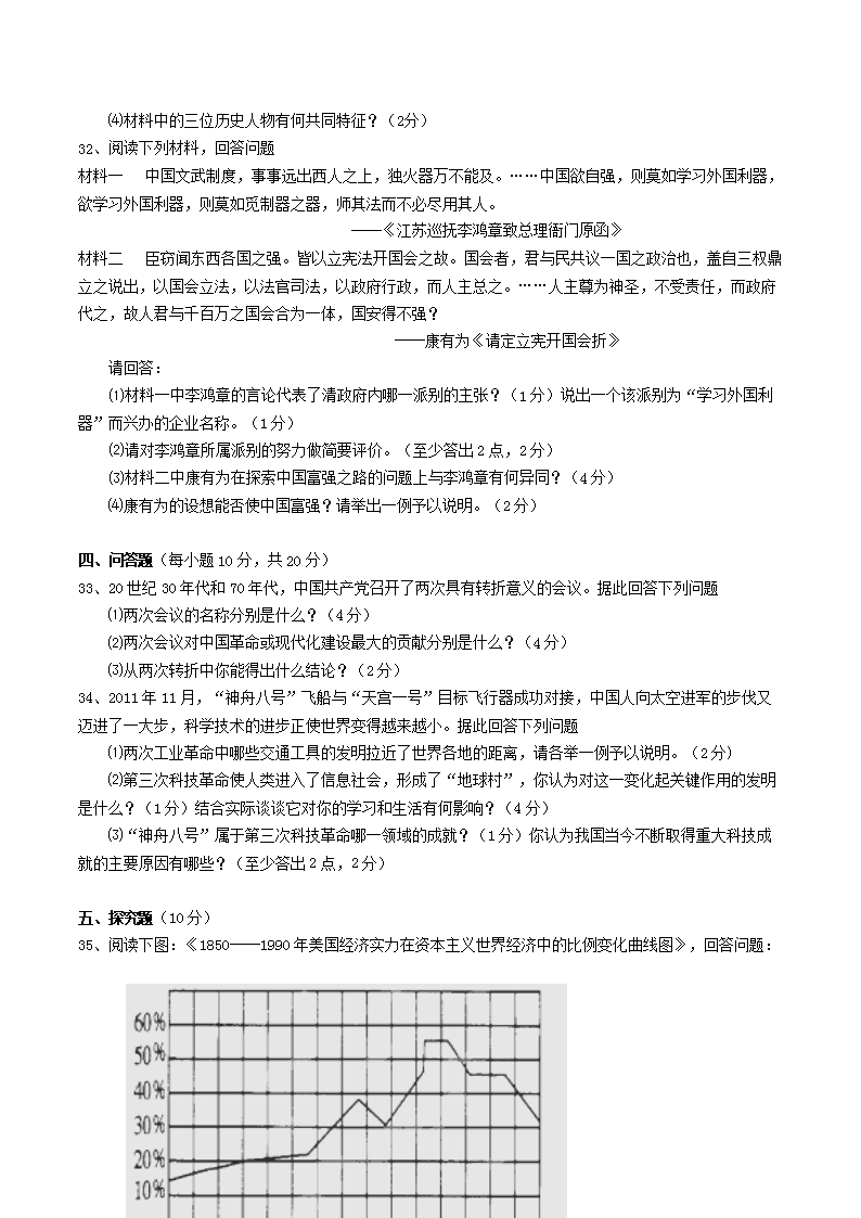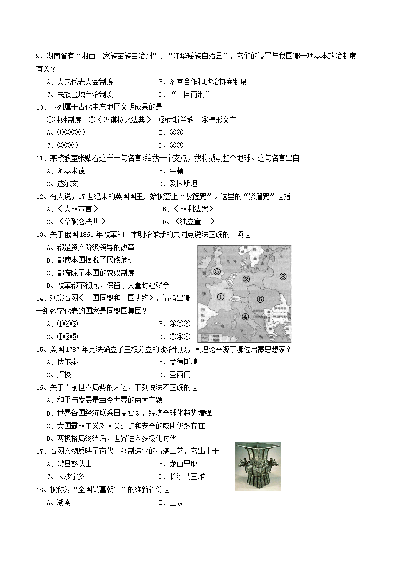 【文档名称】 2012年湖南省湘潭市中考历史真题及答案(Word版).doc