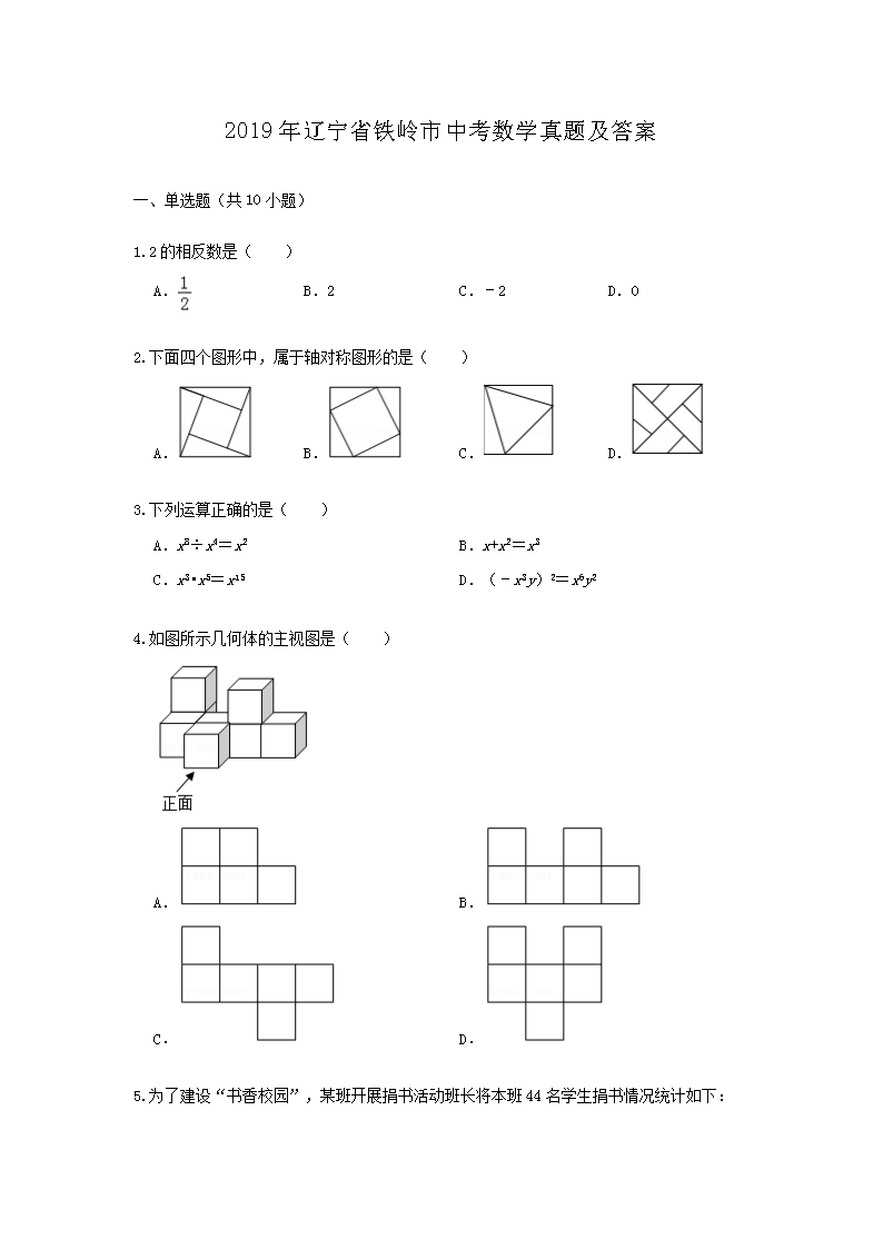 【文档名称】 2019年辽宁省铁岭市中考数学真题及答案(Word版).doc