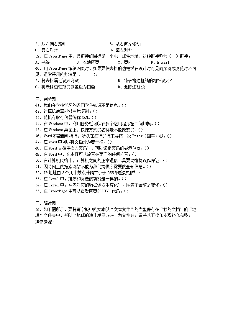 【文档名称】 2006年广西普通高中会考信息技术真题(Word版).doc