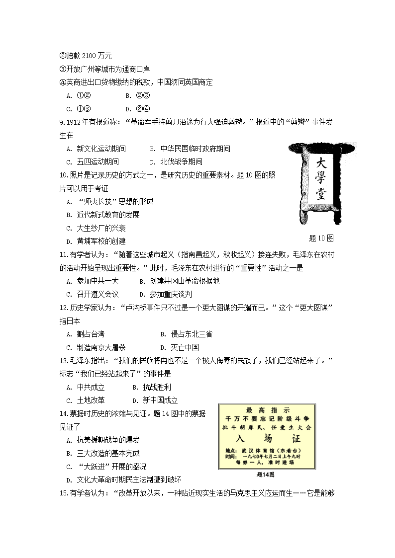 【文档名称】 2013年广东省茂名市中考历史真题及答案(Word版).doc