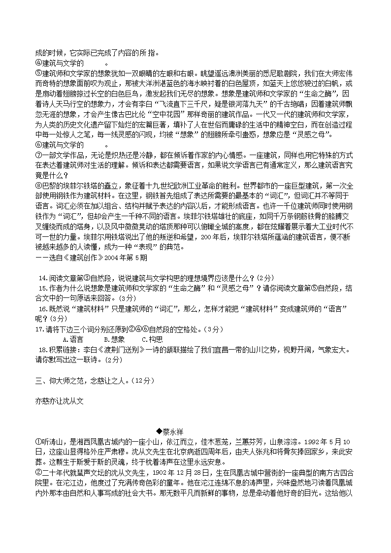 【文档预览】 无忧考网整理发布2012年湖北省宜昌市中考语文真题及答案(Word版),前五页预览如下: