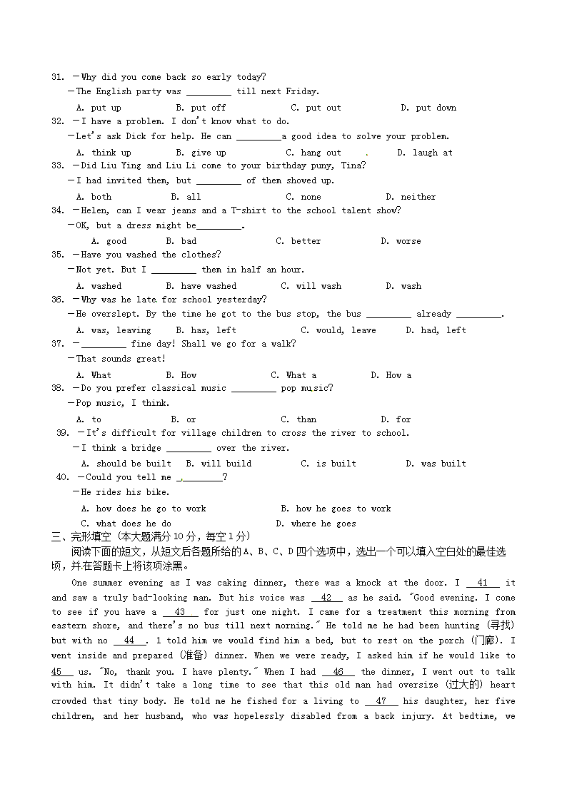 【文档名称】 2012年湖北省襄阳市中考英语真题及答案(Word版).doc