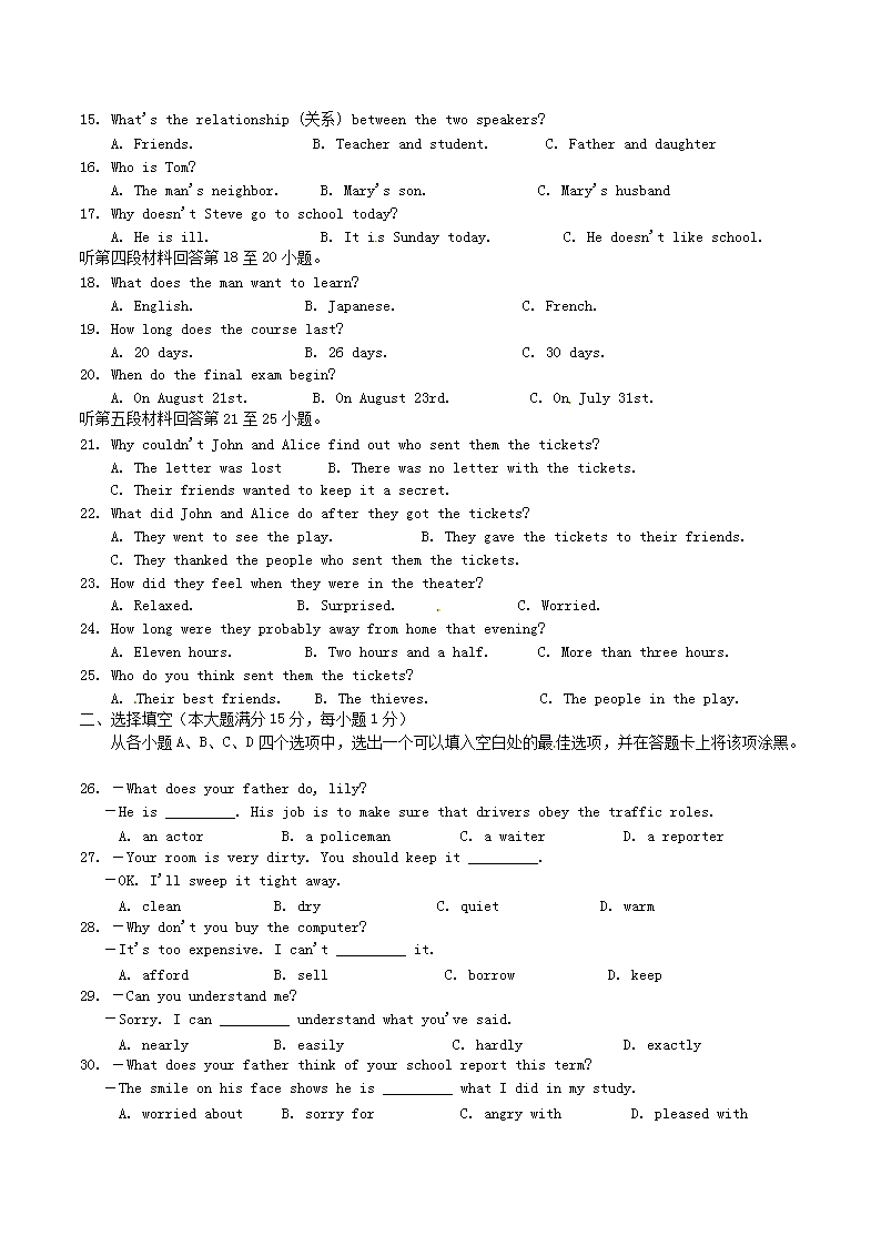 【文档预览】 无忧考网整理发布2012年湖北省襄阳市中考英语真题及答案(Word版),前五页预览如下: