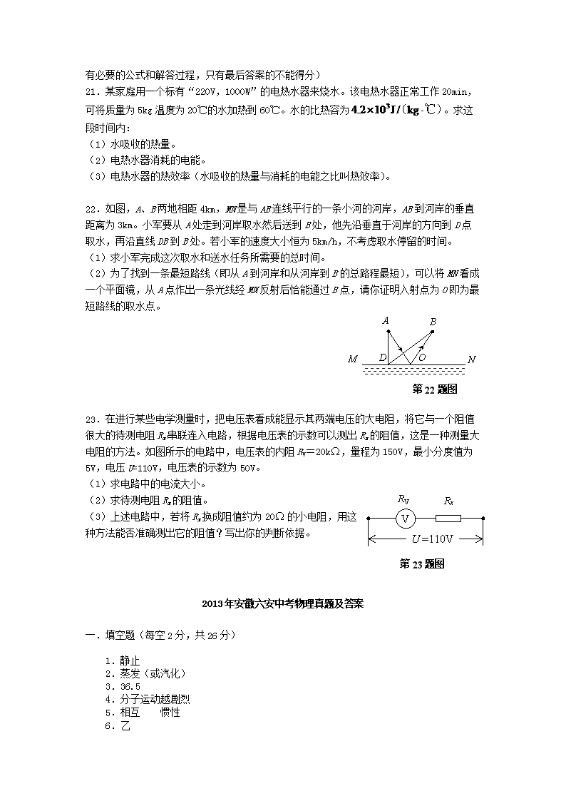 【文档预览】 无忧考网整理发布2013年安徽六安中考物理真题及答案(Word版),前五页预览如下: