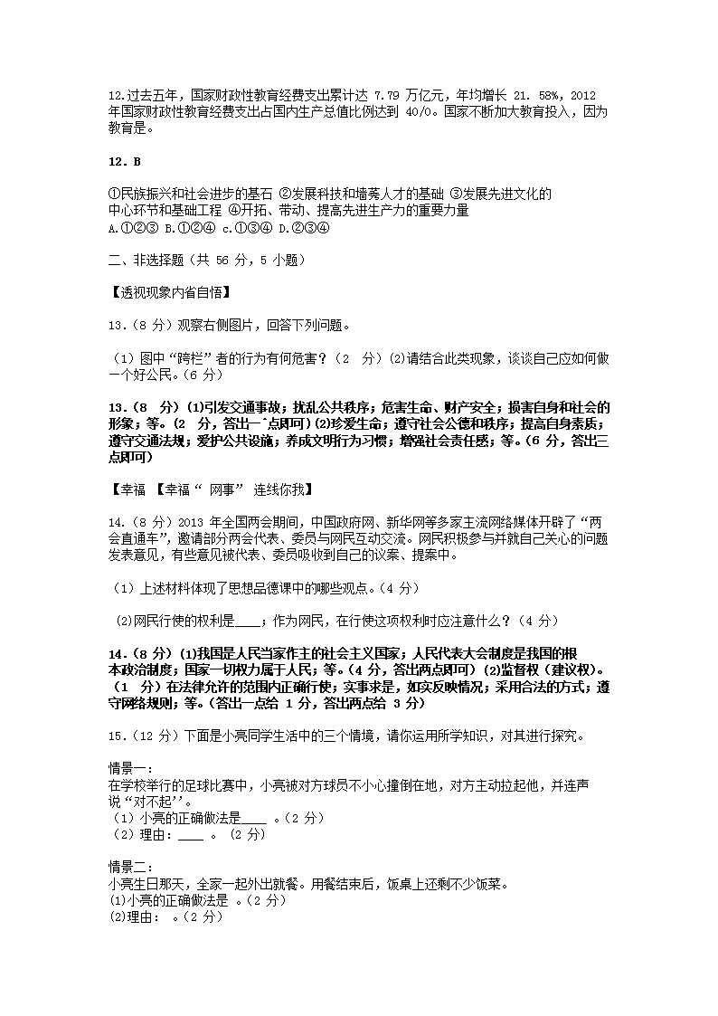 【文档名称】 2013年安徽六安中考政治真题及答案(Word版).doc