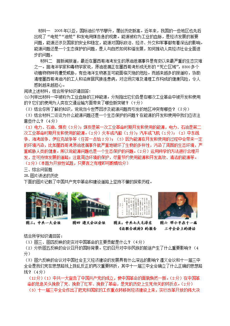 【文档名称】 2010年贵州贵阳市中考历史真题及答案(Word版).doc