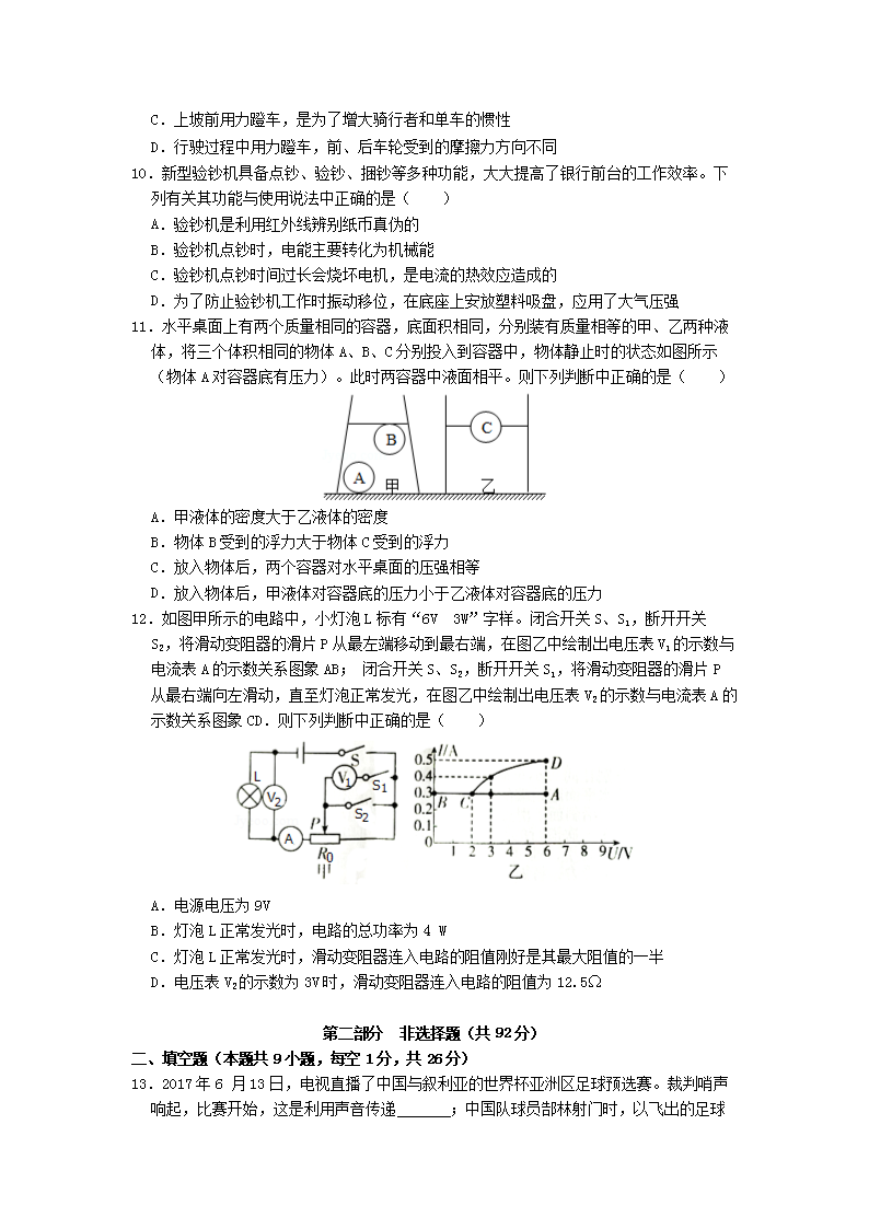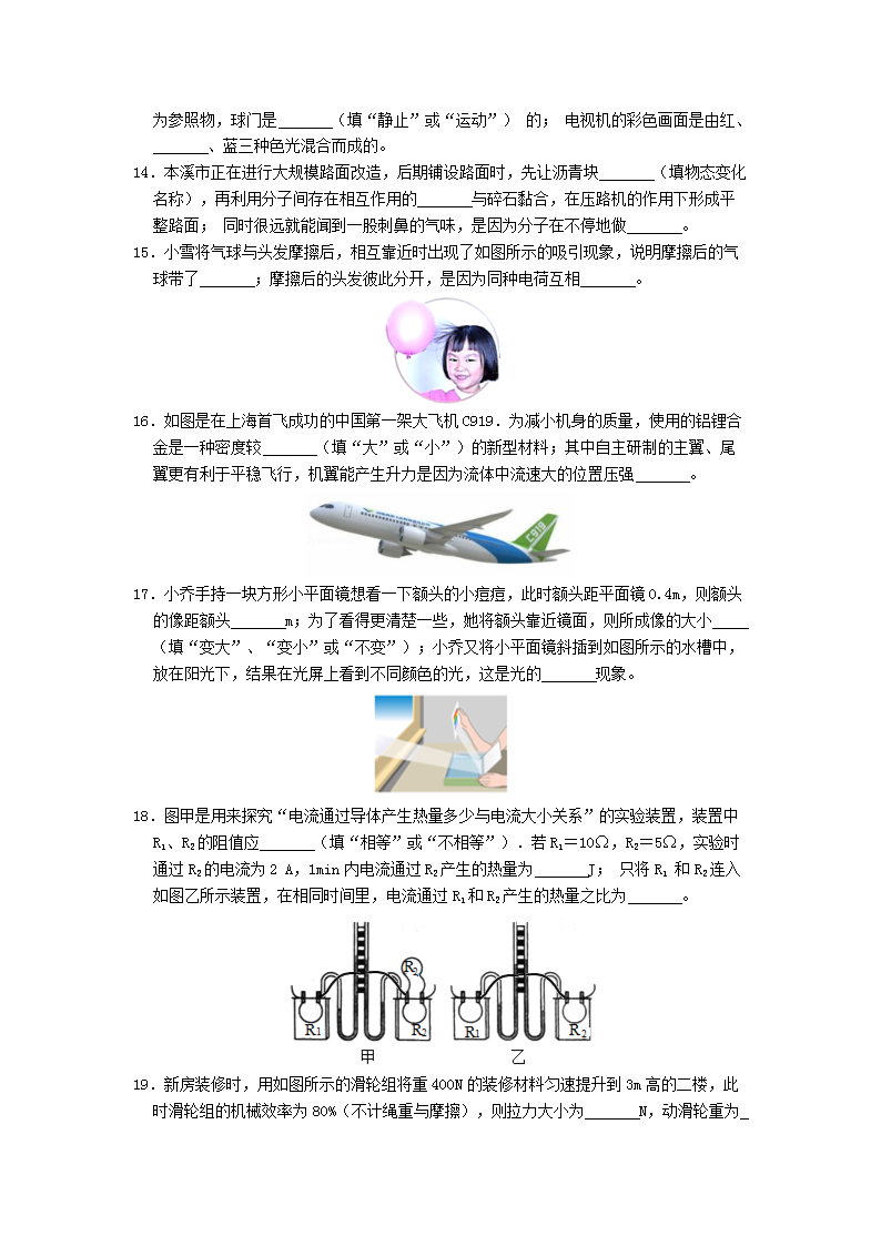 【文档名称】 2017年辽宁省本溪市中考物理真题及答案(Word版).doc