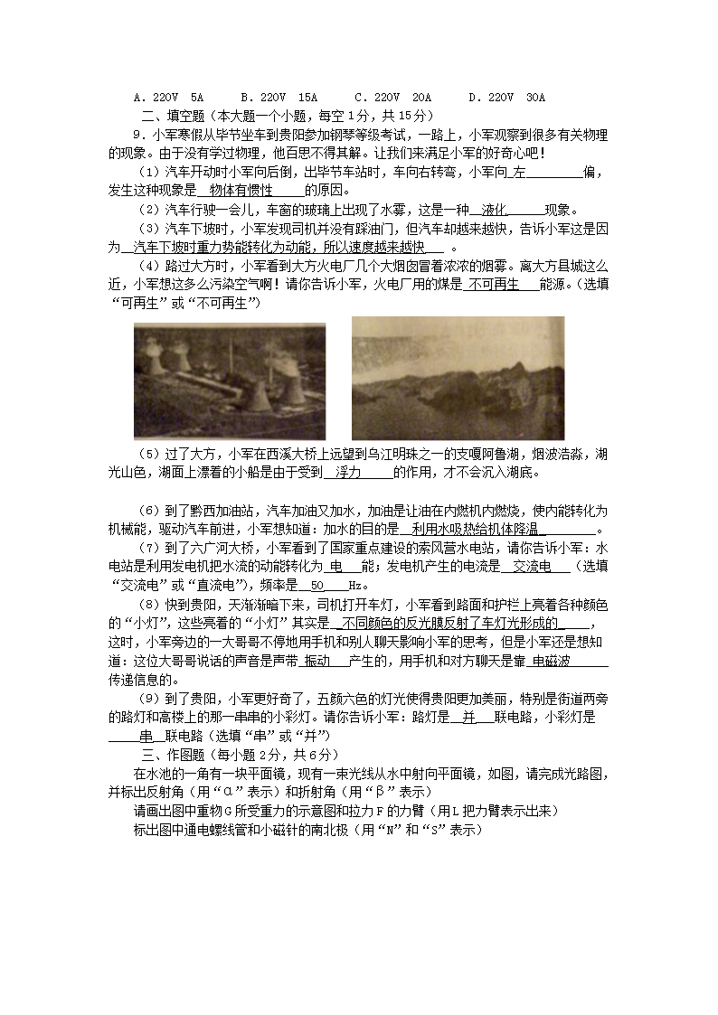 【文档名称】 2010年贵州毕节中考物理真题及答案(Word版).doc