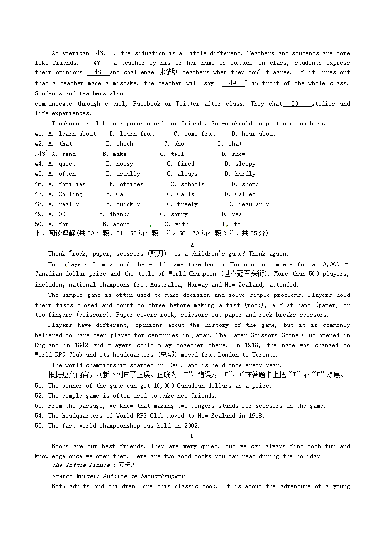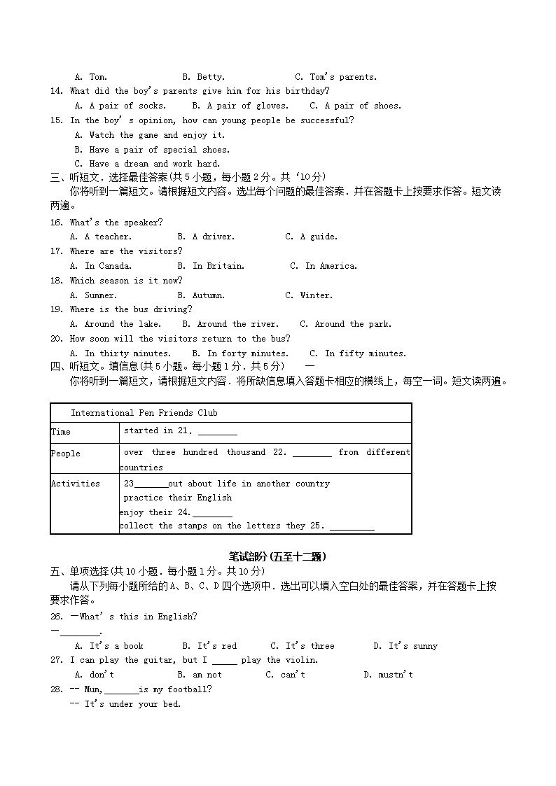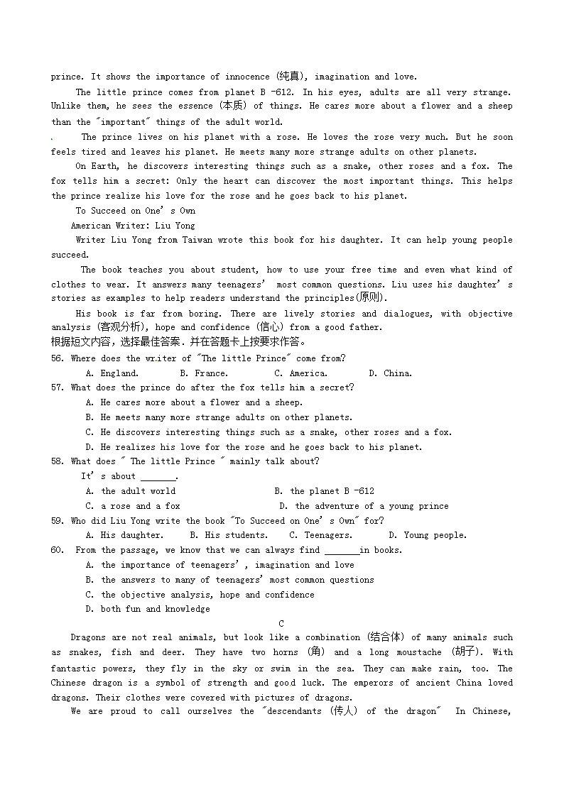 【文档预览】 无忧考网整理发布2012年广西南宁市中考英语真题及答案(Word版),前五页预览如下: