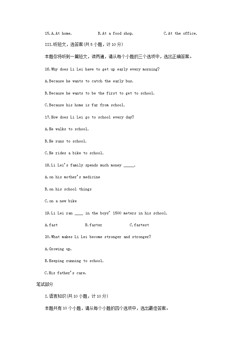 【文档预览】 无忧考网整理发布2007年陕西省宝鸡中考英语真题及答案(Word版),前五页预览如下: