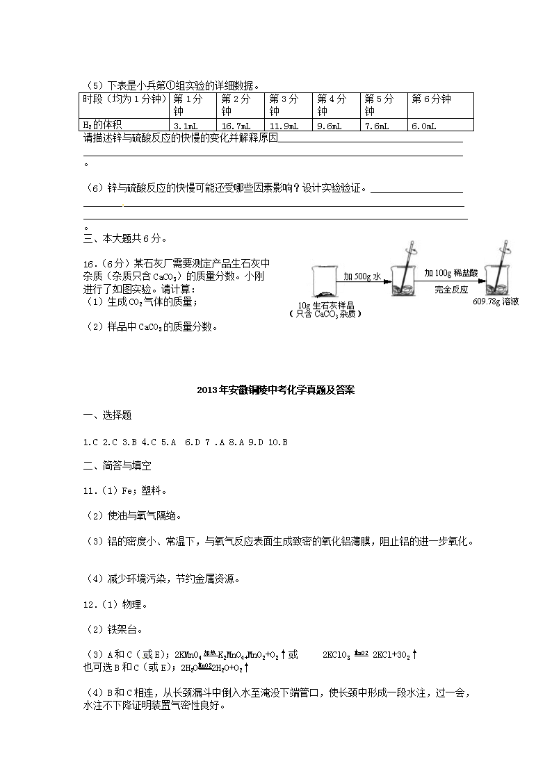 【文档名称】 2013年安徽铜陵中考化学真题及答案(Word版).doc