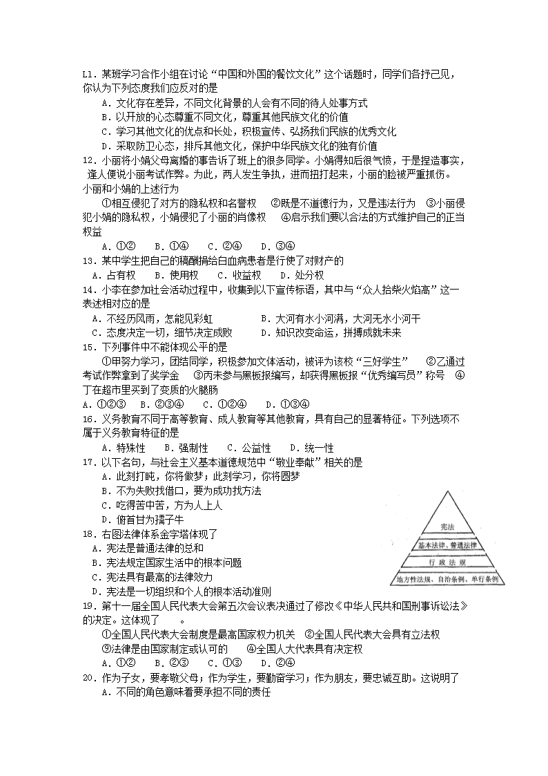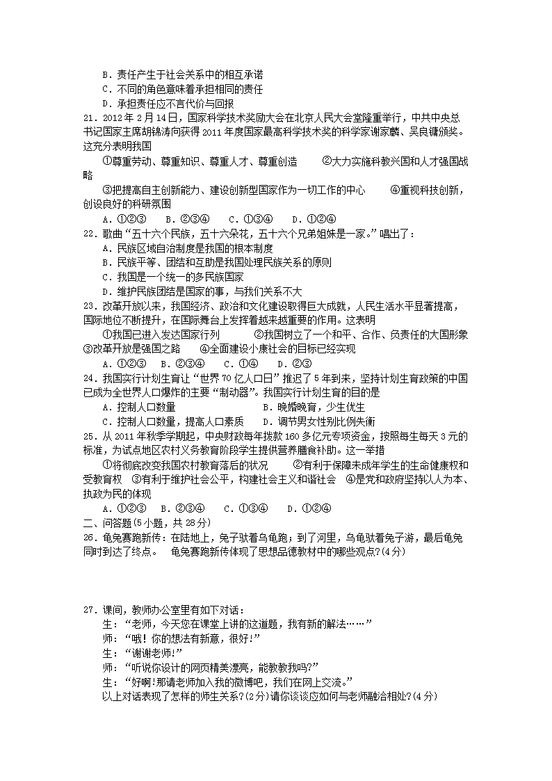 【文档名称】 2012年云南怒江中考道德与法治真题及答案(Word版).doc