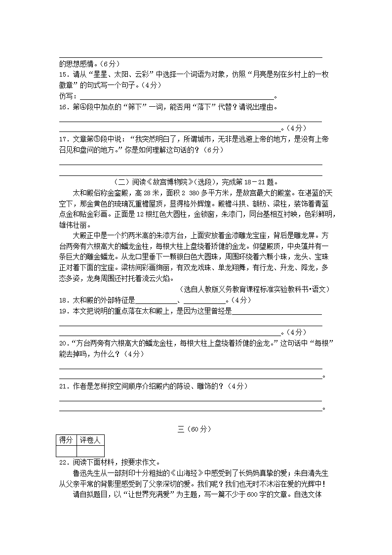 【文档预览】 无忧考网整理发布2010年贵州铜仁中考语文真题及答案(Word版),前五页预览如下: