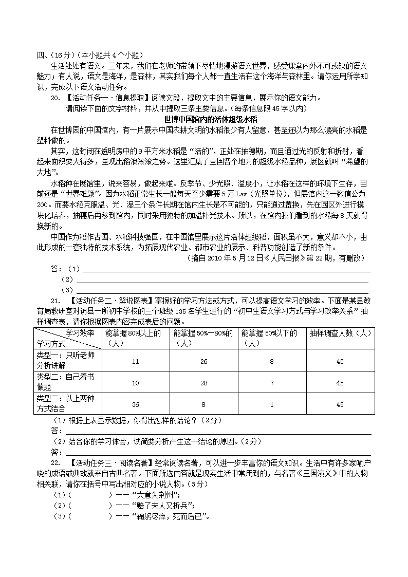 【文档名称】 2010年贵州黔东南州中考语文真题及答案(Word版).doc