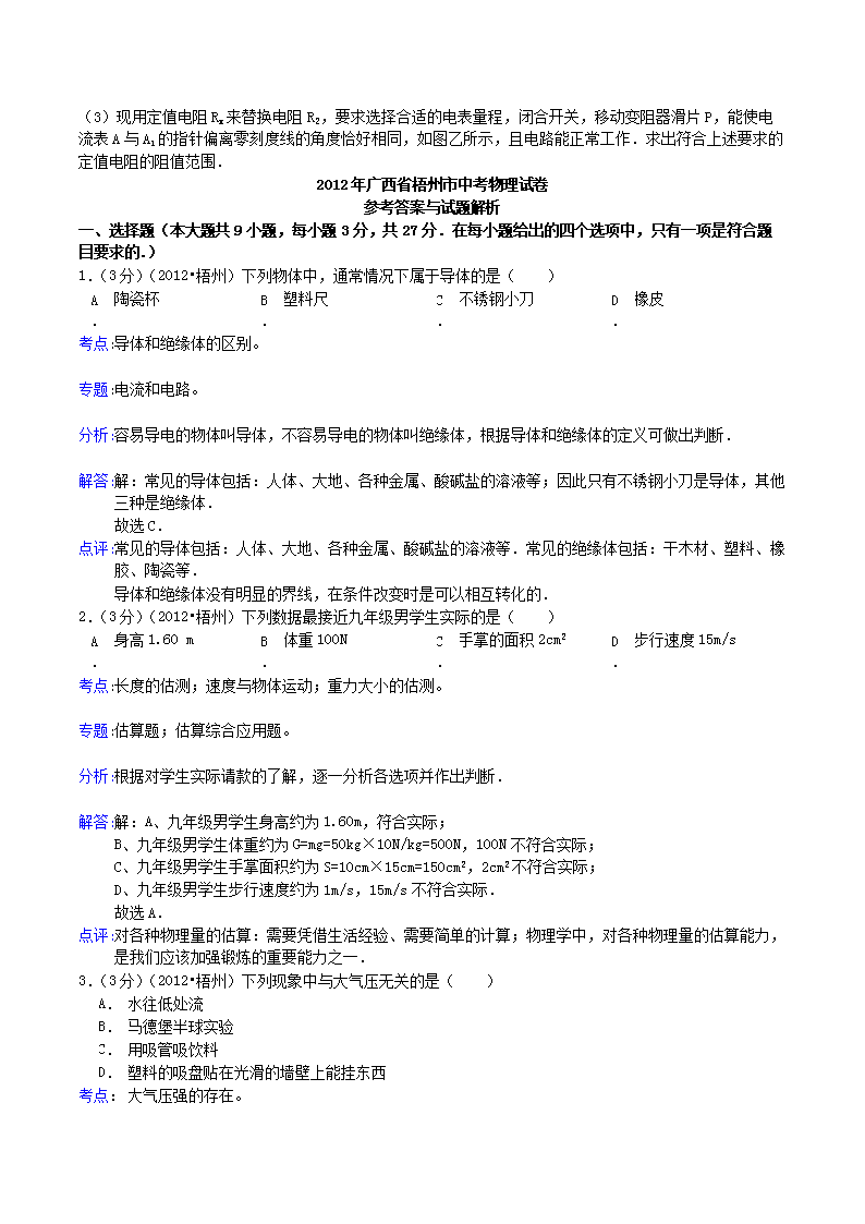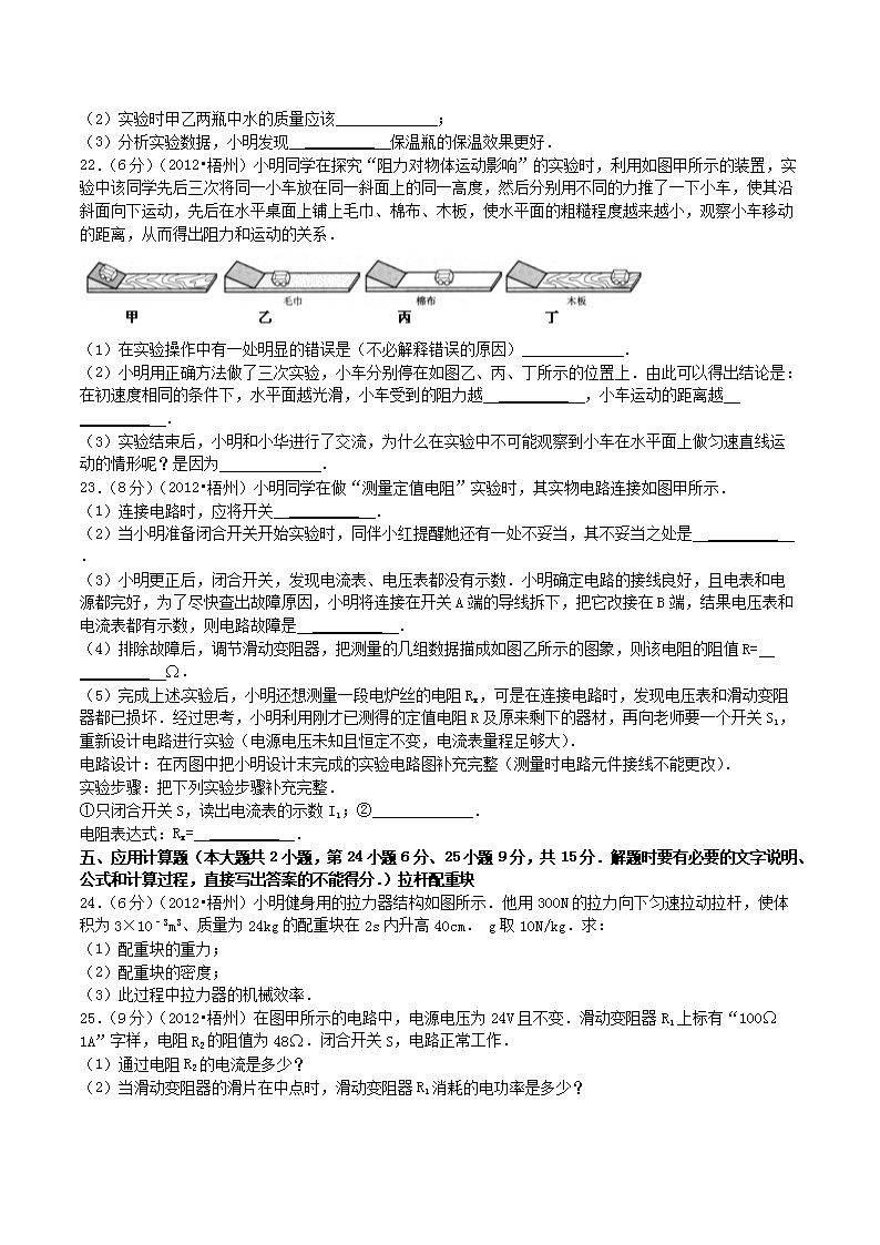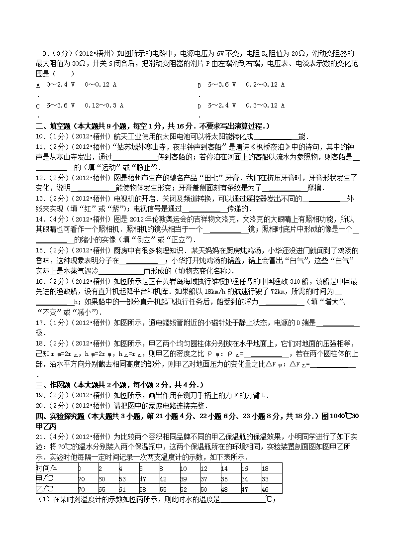 【文档名称】 2012年广西梧州市中考物理真题及答案(Word版).doc