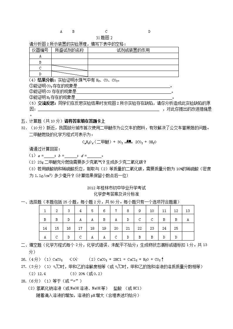 【文档名称】 2012年广西桂林市中考化学真题及答案(Word版).doc