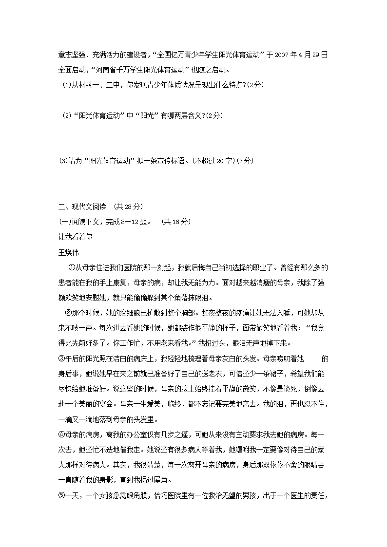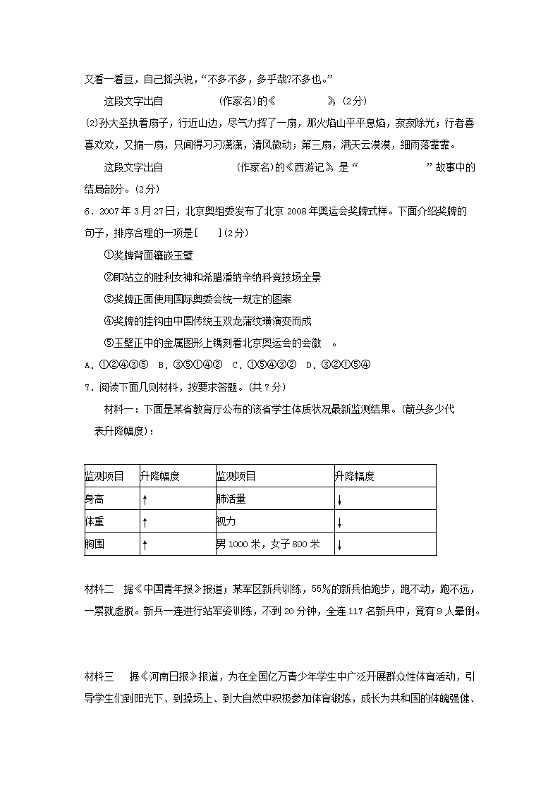 【文档名称】 2007年河南濮阳中考语文真题及答案(Word版).doc