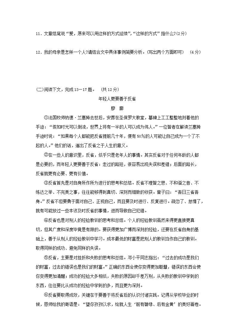 【文档预览】 无忧考网整理发布2007年河南商丘中考语文真题及答案(Word版),前五页预览如下: