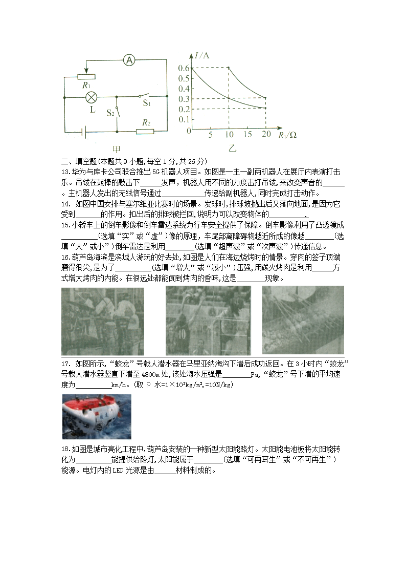 【文档名称】 2017年辽宁省葫芦岛市中考物理真题及答案(Word版).doc