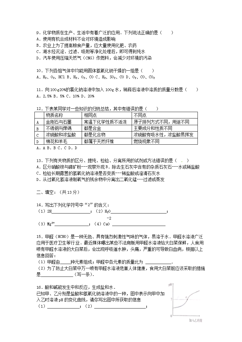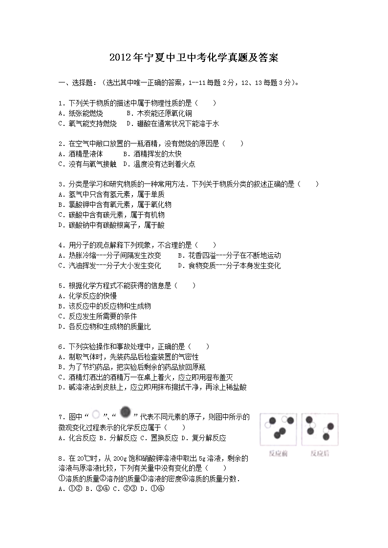 【文档名称】 2012年宁夏中卫中考化学真题及答案(Word版).doc