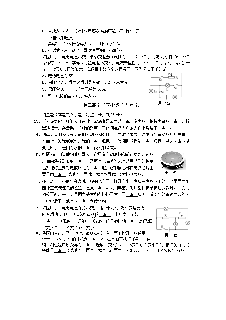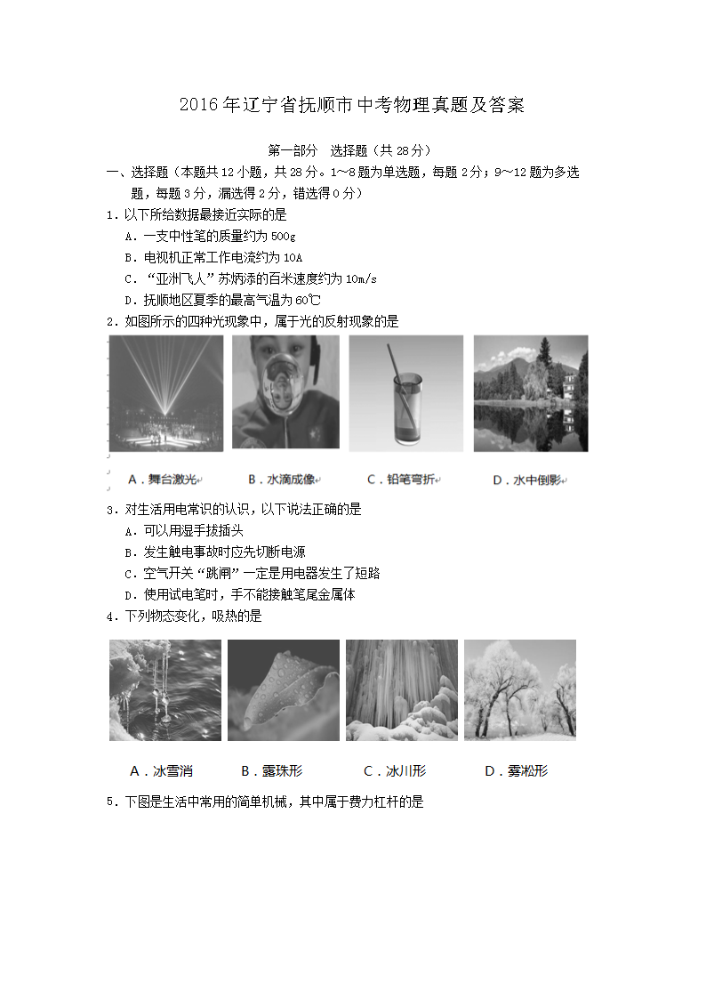 【文档预览】 无忧考网整理发布2016年辽宁省抚顺市中考物理真题及答案(Word版),前五页预览如下: