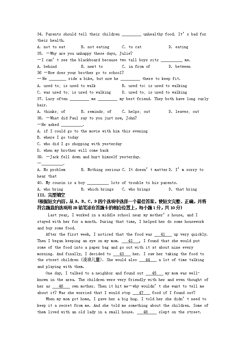 【文档预览】 无忧考网整理发布2017年辽宁省丹东市中考英语真题及答案(Word版),前五页预览如下: