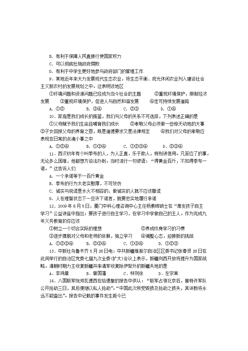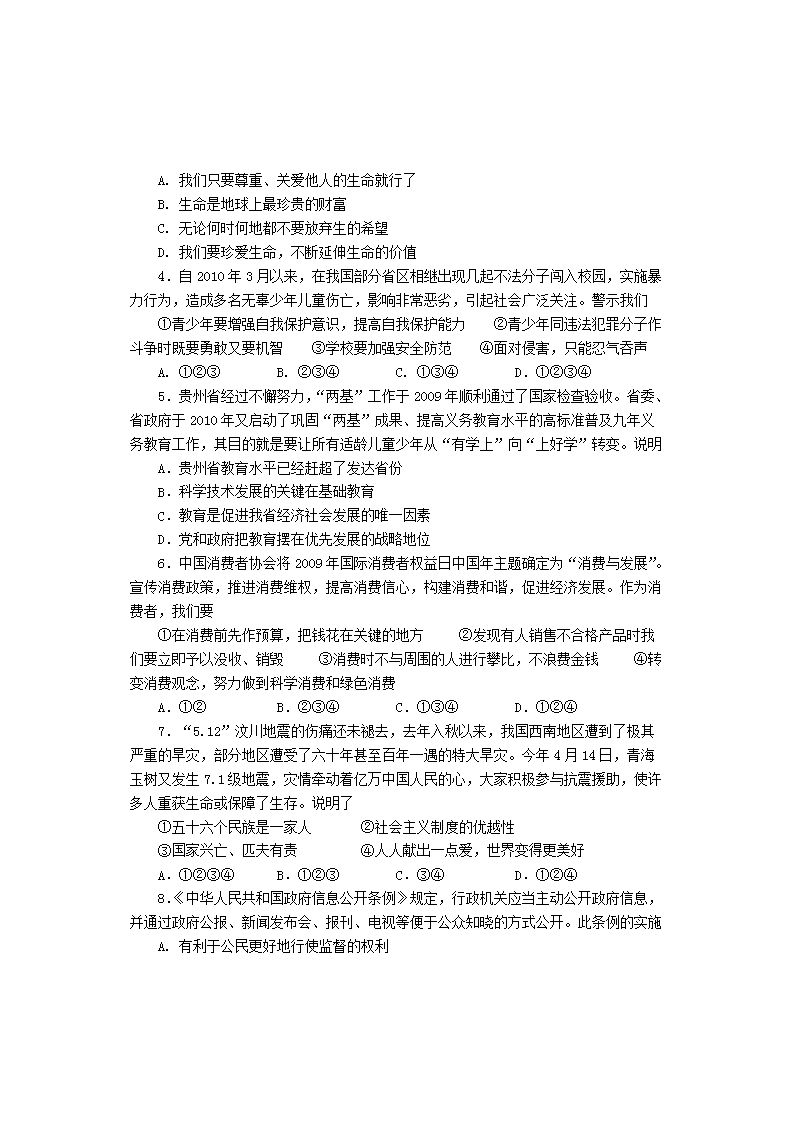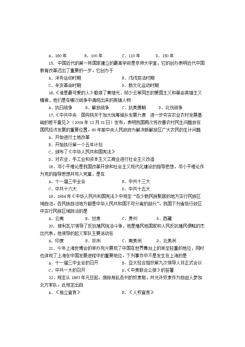 【文档名称】 2010年贵州铜仁中考文综真题及答案(Word版).doc