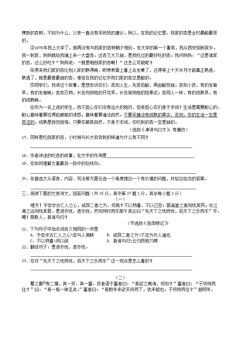 【文档预览】 无忧考网整理发布2011年湖南省株洲市中考语文真题及答案(Word版),前五页预览如下: