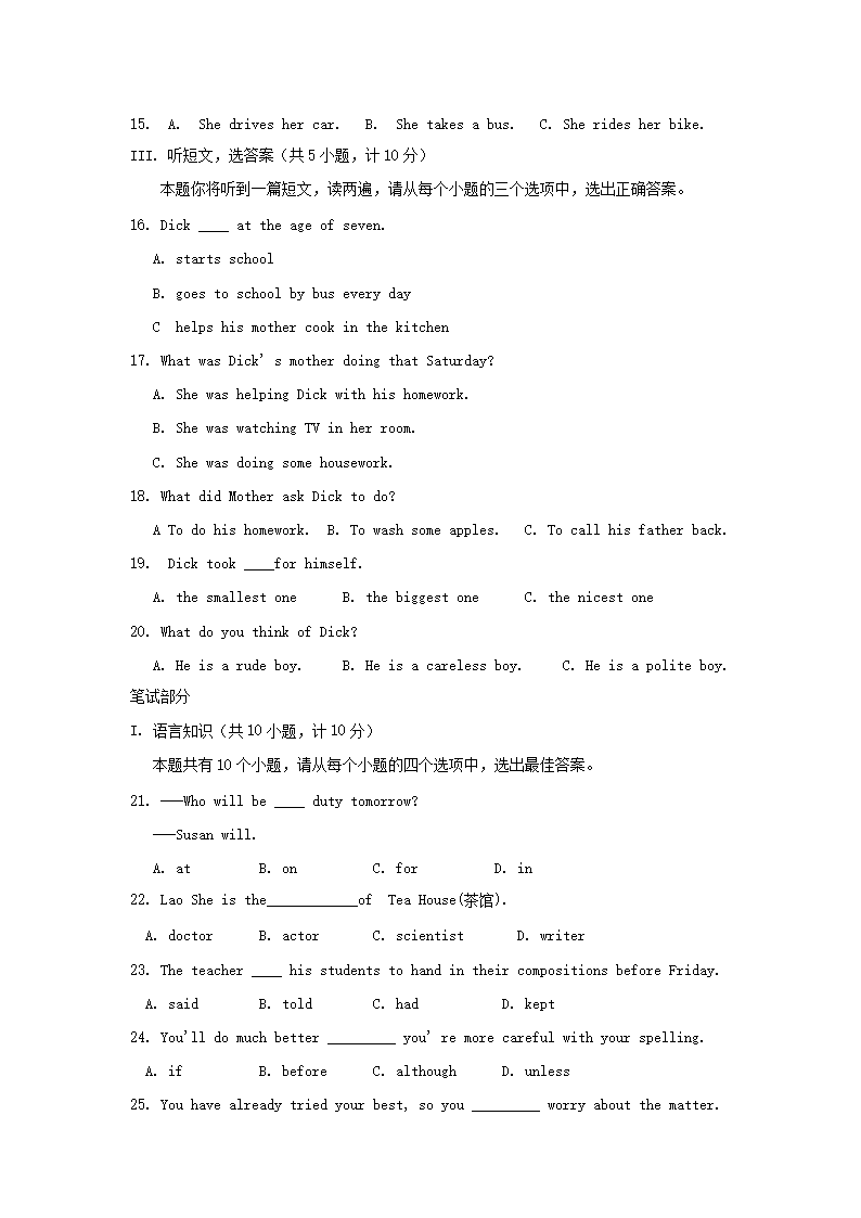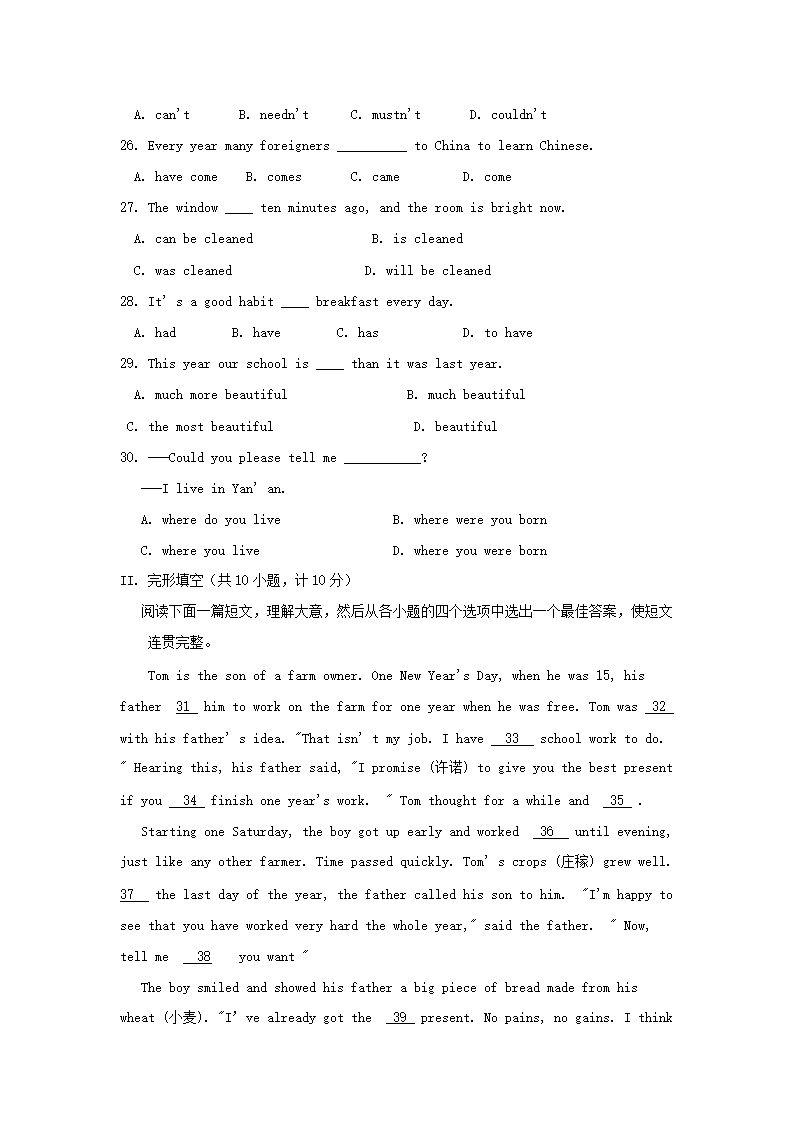 【文档名称】 2006年陕西省商洛中考英语真题及答案(Word版).doc