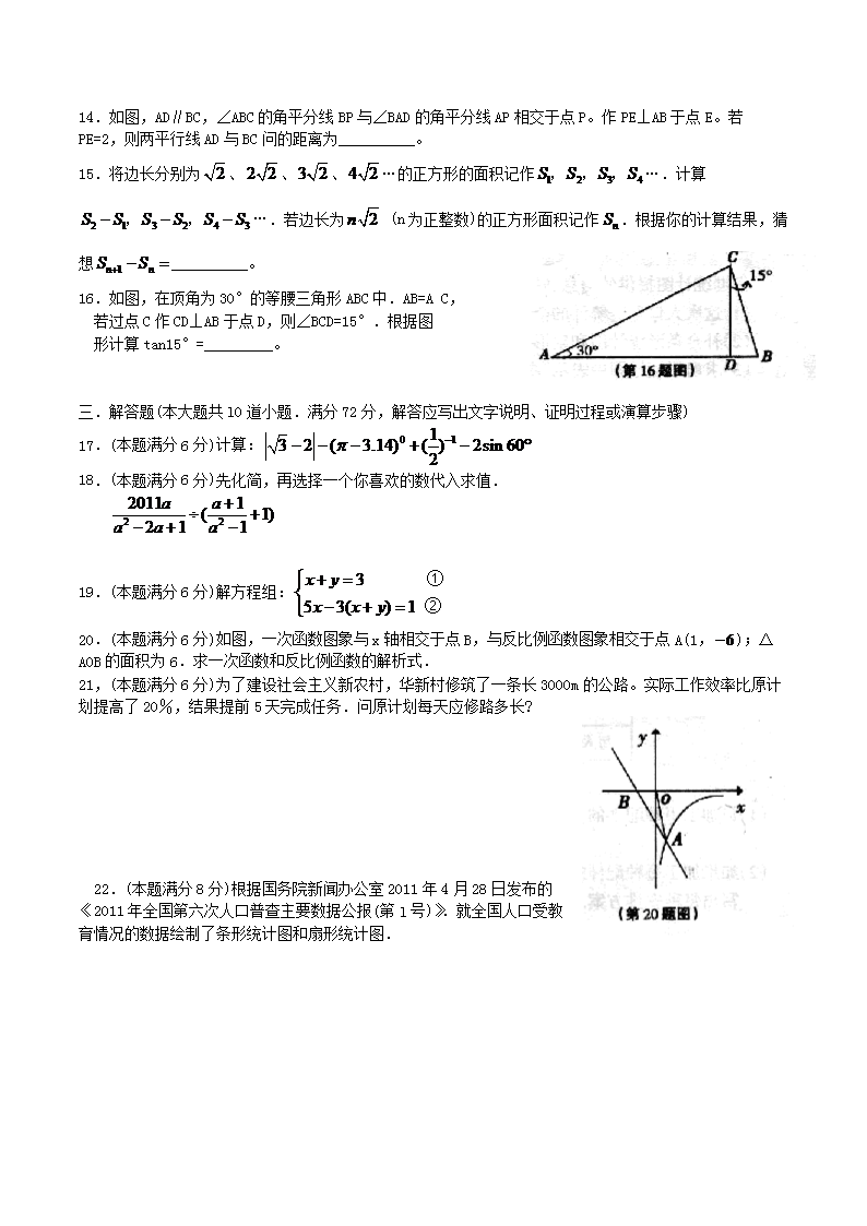 【文档预览】 无忧考网整理发布2011年湖南省岳阳市中考数学真题及答案(Word版),前五页预览如下: