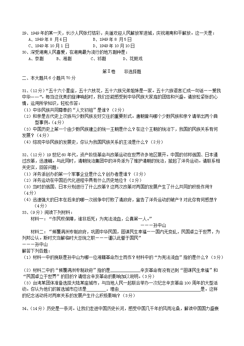 【文档预览】 无忧考网整理发布2011年湖南省岳阳市中考历史真题及答案(Word版),前五页预览如下: