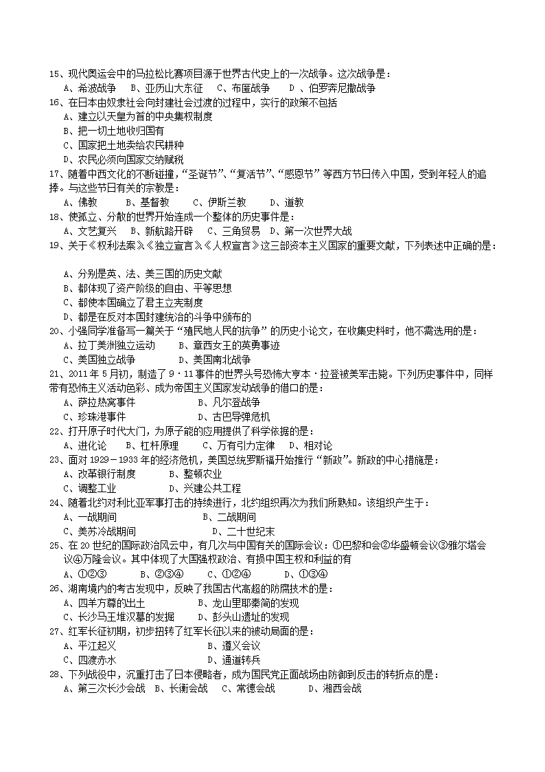 【文档名称】 2011年湖南省岳阳市中考历史真题及答案(Word版).doc