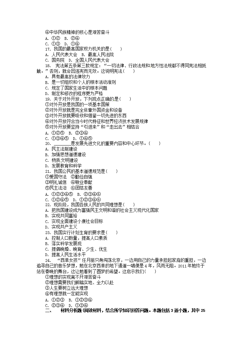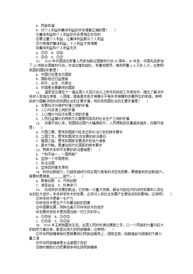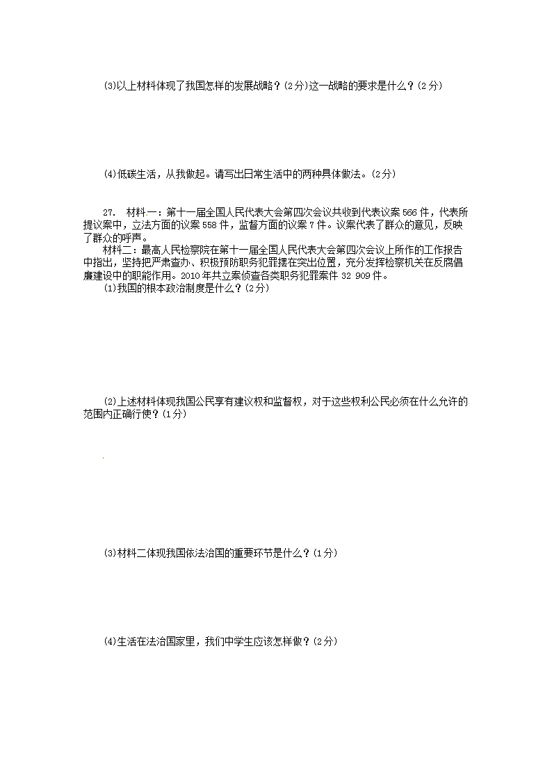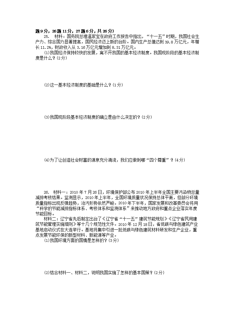 【文档名称】 2011年辽宁省本溪市中考政治真题及答案(Word版).doc