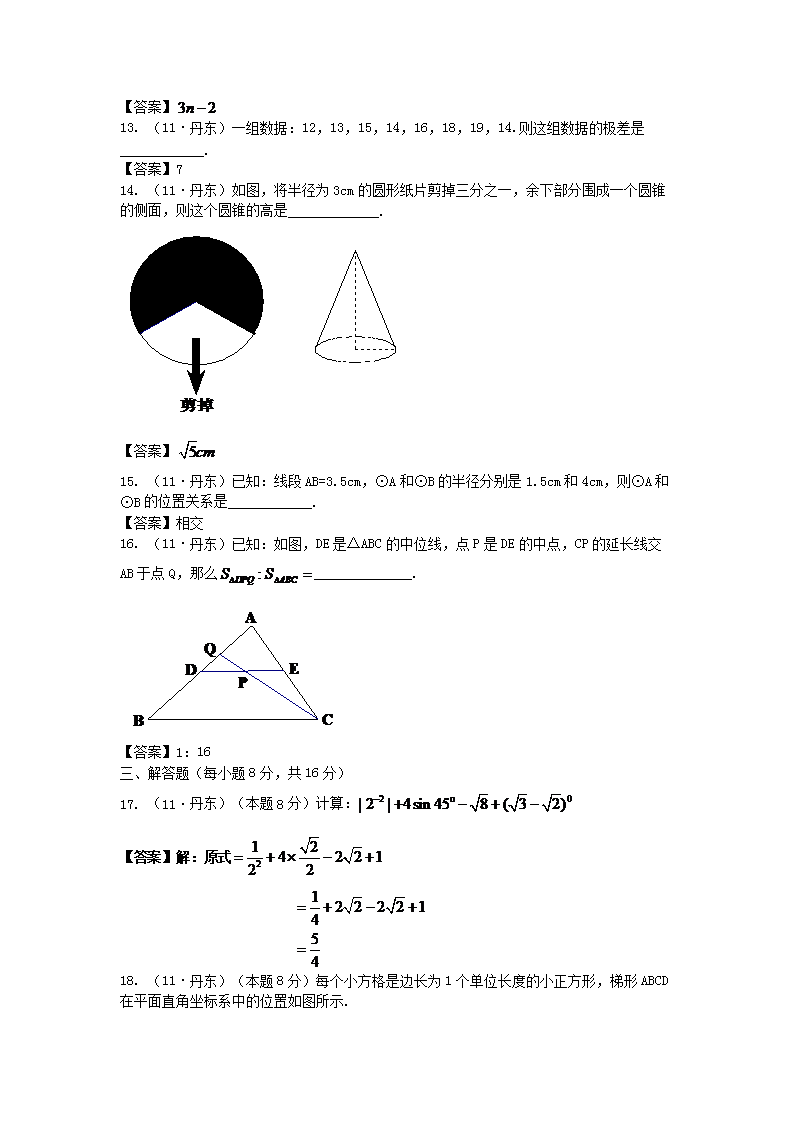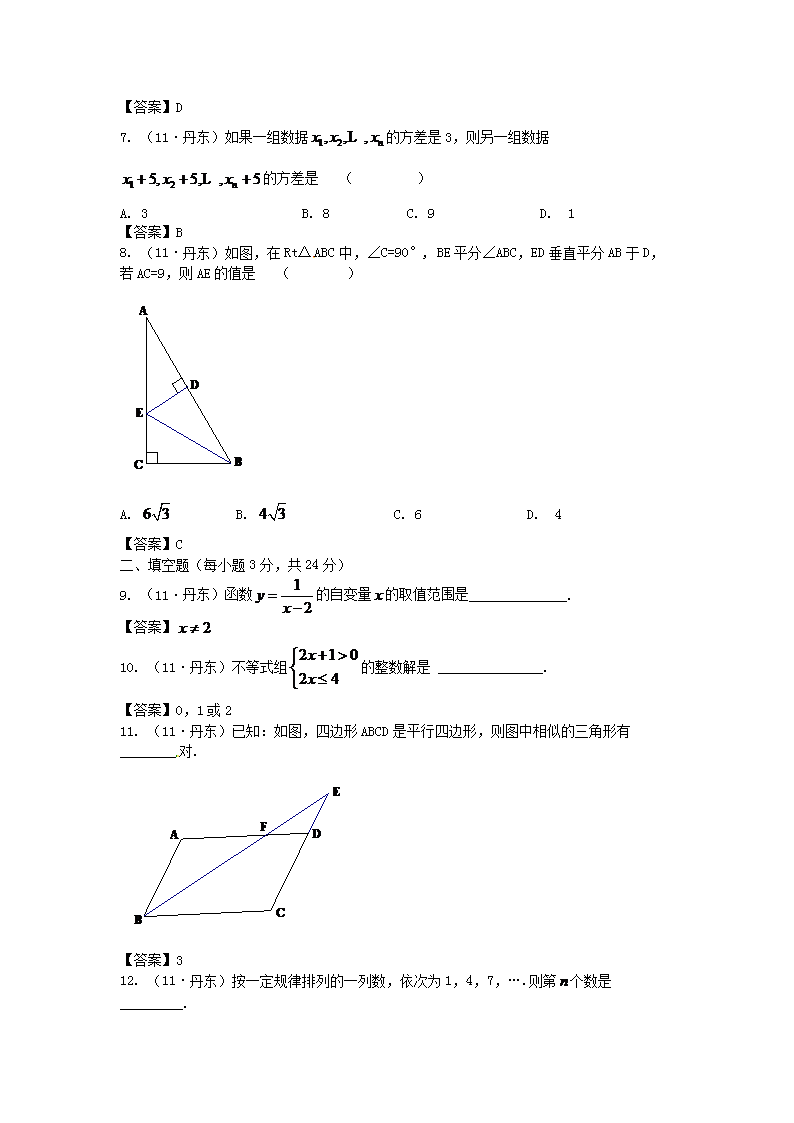 【文档名称】 2011年辽宁省丹东市中考数学真题及答案(Word版).doc
