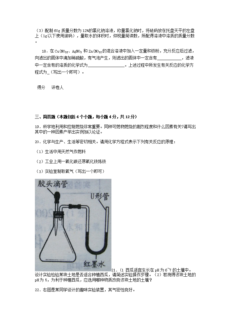 【文档名称】 2007年河南鹤壁中考化学真题及答案(Word版).doc