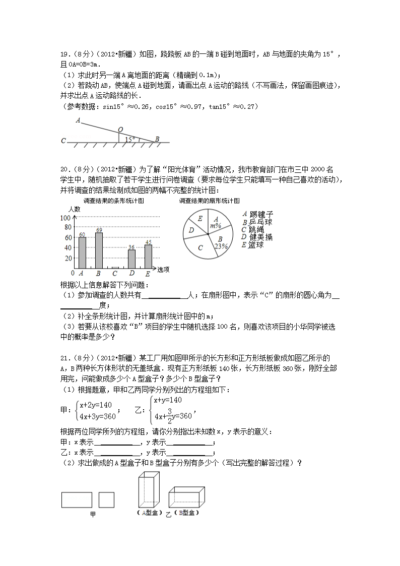 【文档名称】 2012年新疆兵团中考数学真题及答案(Word版).doc