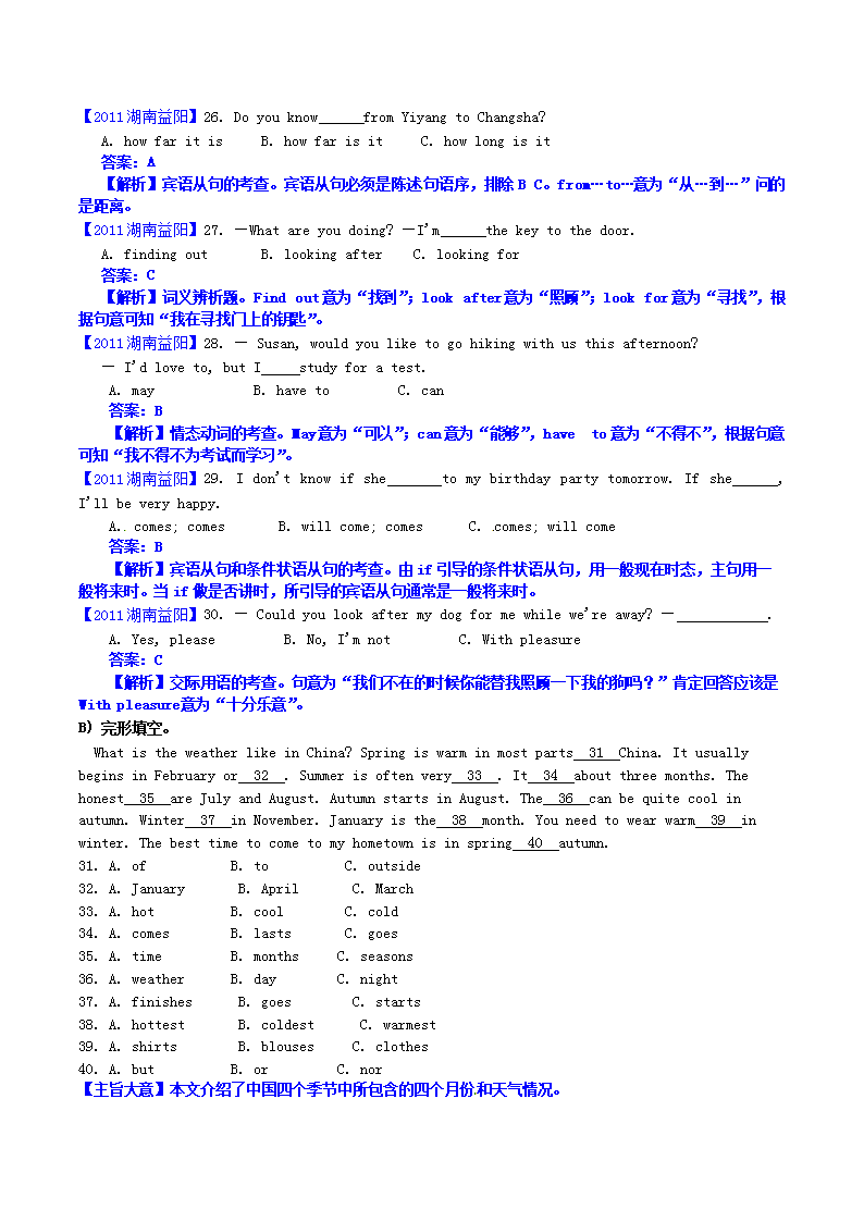 【文档名称】 2011年湖南省益阳市中考英语真题及答案(Word版).doc