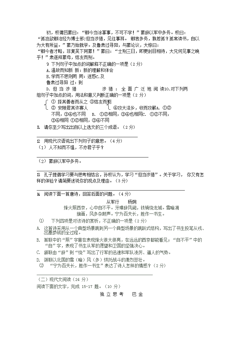 【文档预览】 无忧考网整理发布2011年湖南省永州市中考语文真题及答案(Word版),前五页预览如下: