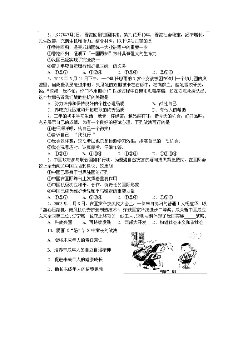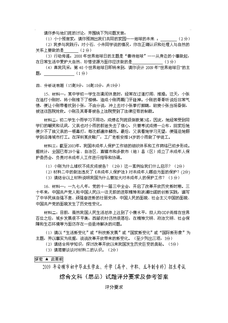 【文档名称】 2009年贵州安顺中考思想品德真题及答案(图片版).doc