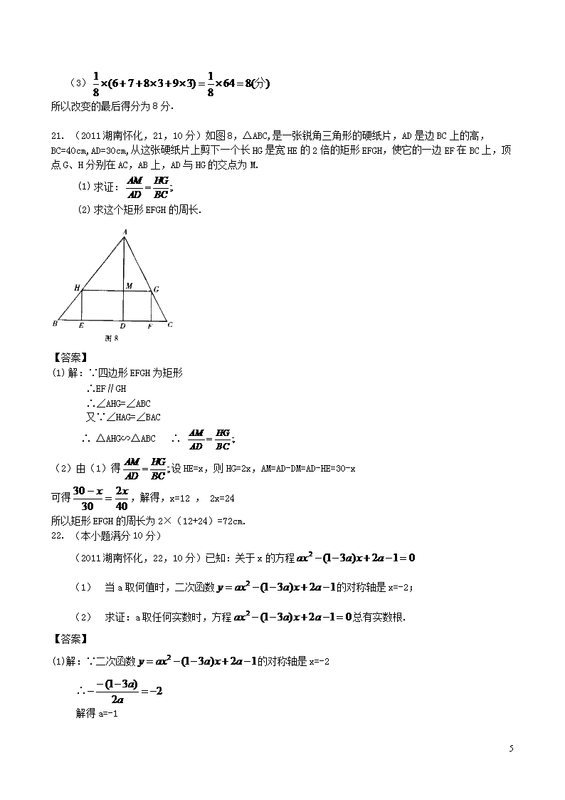 【文档预览】 无忧考网整理发布2011年湖南省怀化市中考数学真题及答案(Word版),前五页预览如下: