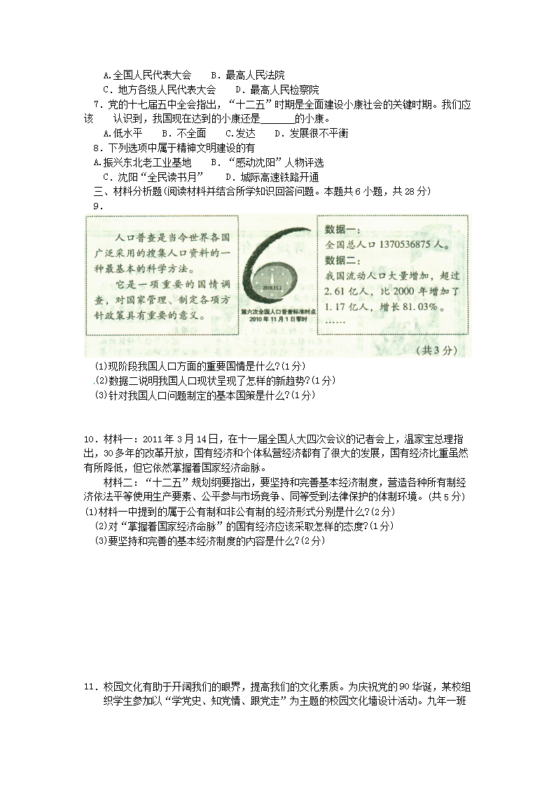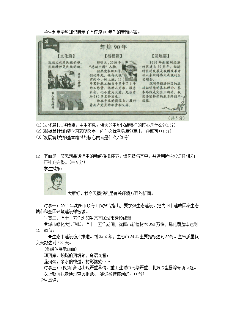 【文档名称】 2011年辽宁省沈阳市中考政治真题及答案(Word版).doc
