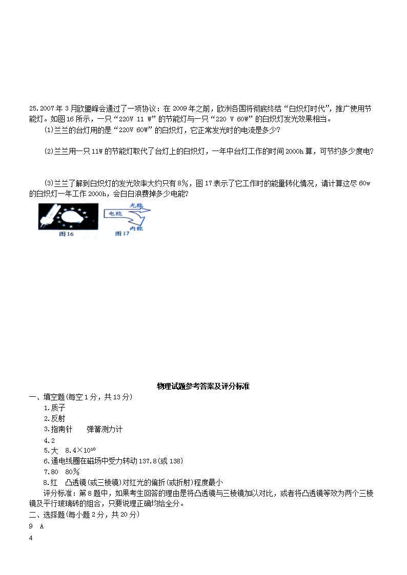 【文档名称】 2007年河南漯河中考物理真题及答案(Word版).doc