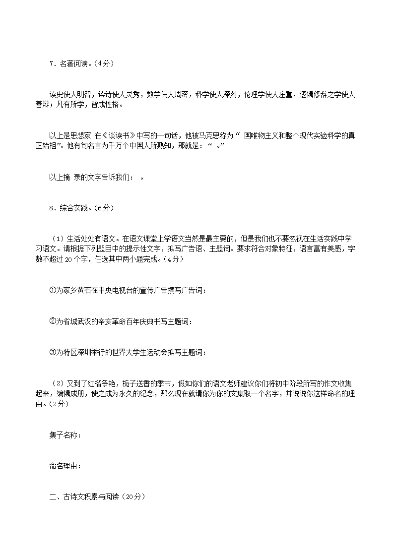 【文档名称】 2011年湖北省黄石市中考语文真题及答案(Word版).doc