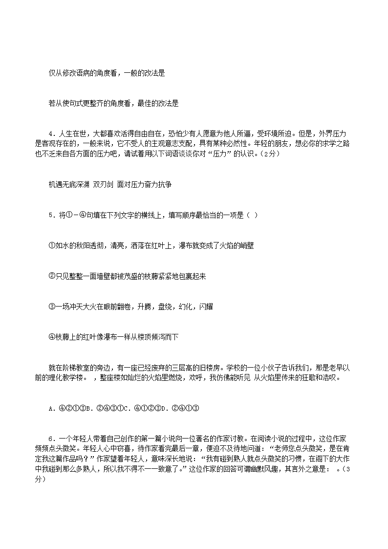 【文档预览】 无忧考网整理发布2011年湖北省黄石市中考语文真题及答案(Word版),前五页预览如下: