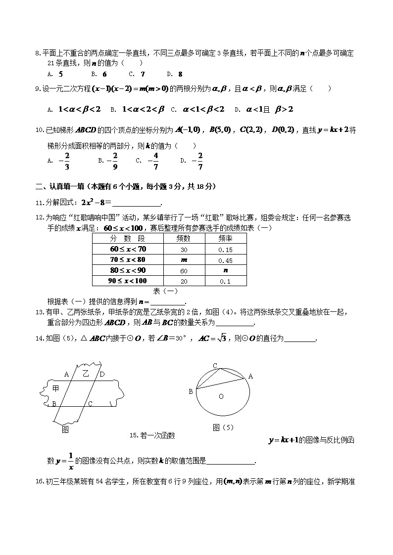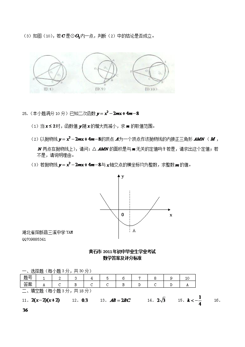【文档预览】 无忧考网整理发布2011年湖北省黄石市中考数学真题及答案(Word版),前五页预览如下: